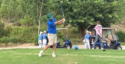 ラウンド中は、撮って打っての繰り返し。日本だったらキャディさんに怒られそう。