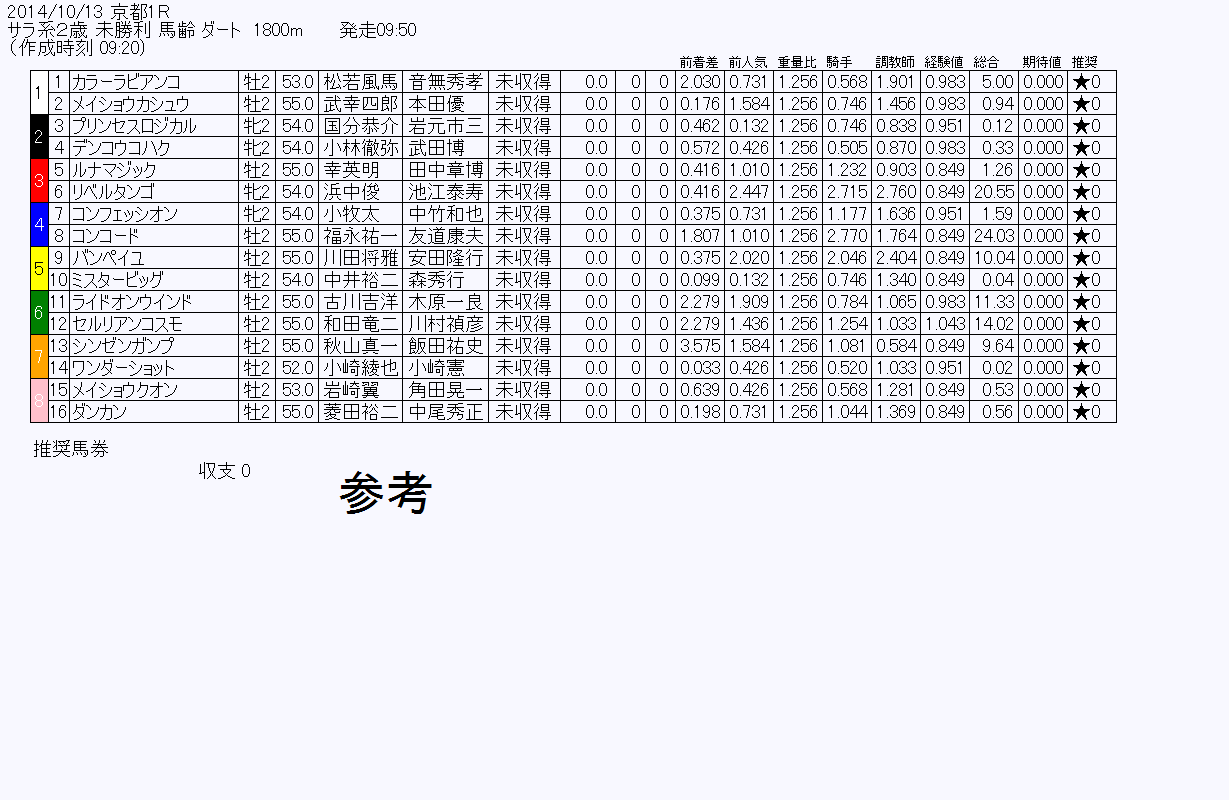 サラ系2歳未勝利 | サラ系2歳未勝利馬齢 | 1800ダート | 09:50 | 予想なし | 0 | 0 | 0 |