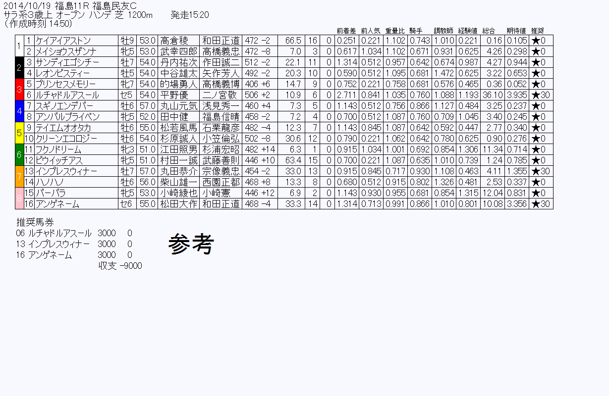 福島民友カップ | サラ系3歳上オープンハンデ | 1200芝 | 15:20 | 予想なし | 0 | 0 | 0 |