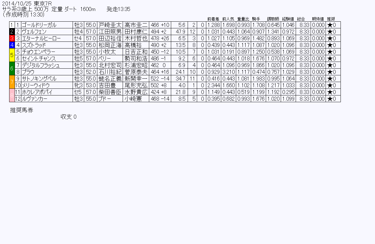 サラ系3歳上500万 | サラ系3歳上500万定量 | 1400ダート | 13:55 | 見送り | 0 | 0 | 0 |