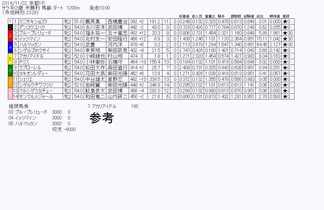 サラ系2歳未勝利 | サラ系2歳未勝利馬齢 | 1600芝 | 11:15 | 投票済 | 2700 | 0 | -2700 |