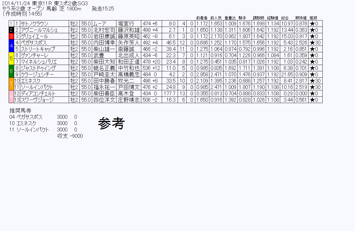 サラ系2歳未勝利 | サラ系2歳未勝利馬齢 | 1400芝 | 10:50 | 投票済 | 500 | 0 | -500 |