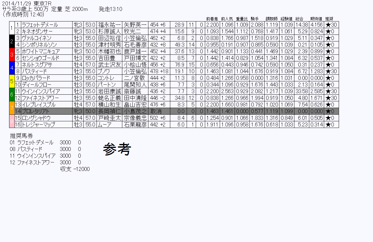 サラ系3歳上500万 | サラ系3歳上500万定量 | 1400ダート | 13:25 | 見送り | 0 | 0 | 0 |