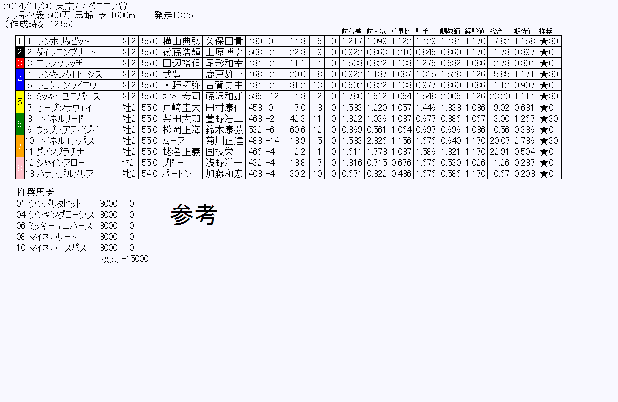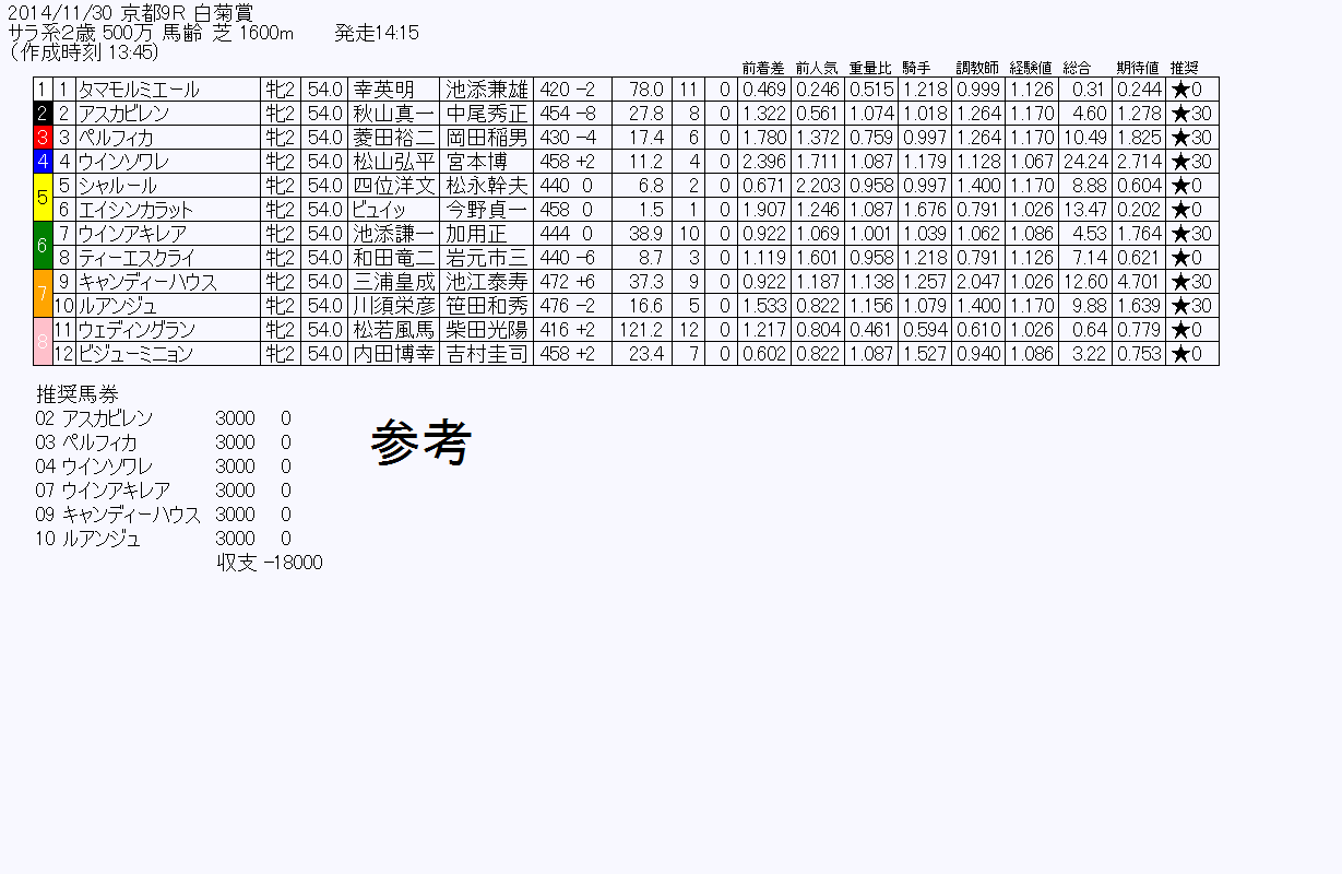 白菊賞 | サラ系2歳500万馬齢 | 1600芝 | 14:15 | 予想なし | 0 | 0 | 0 |