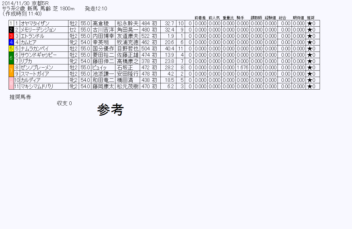 サラ系2歳新馬 | サラ系2歳新馬馬齢 | 1400芝 | 12:40 | 予想なし | 0 | 0 | 0 |
