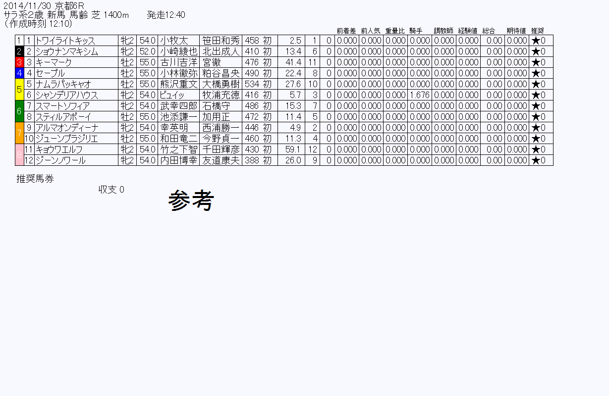 サラ系2歳未勝利 | サラ系2歳未勝利馬齢 | 1200ダート | 09:50 | 予想なし | 0 | 0 | 0 |