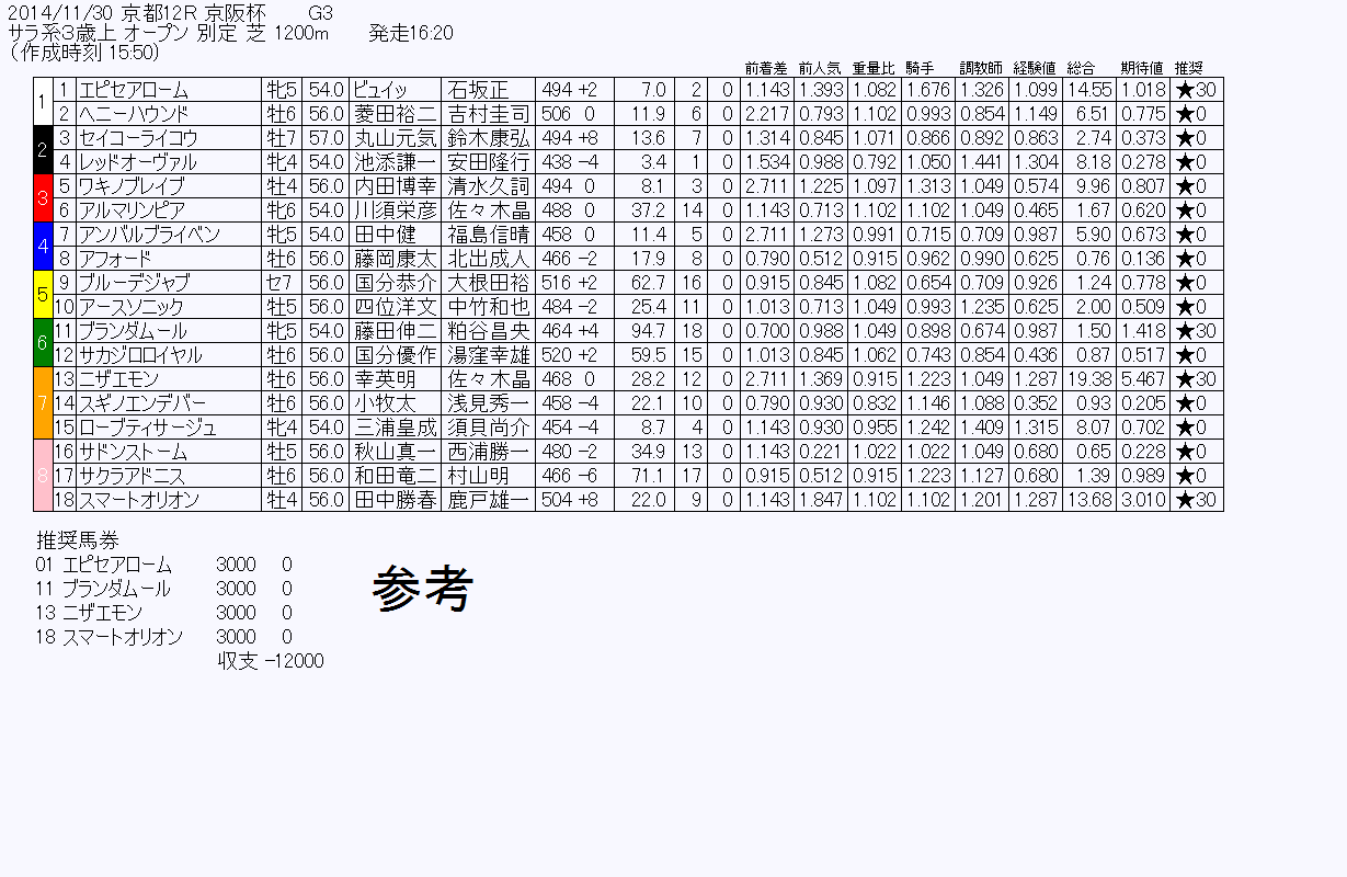 京阪杯 | サラ系3歳上オープン別定 | 1200芝 | 16:20 | 予想なし | 0 | 0 | 0 |