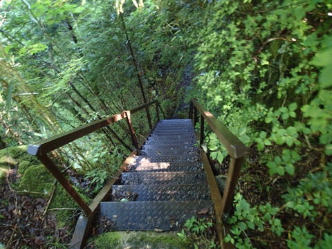 古い階段を下っていく。階段の一番下に降りても足場はそのままもう少し先まで続いているようだが、ここで離脱して沢に降り立つ。