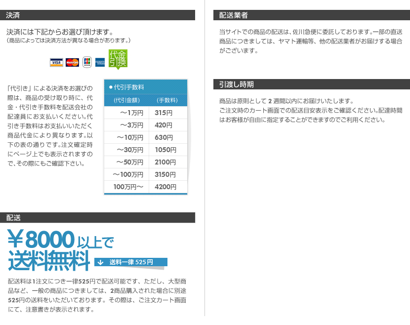 お買い物の流れ 決済・配送・納期について メールマガジンについて FAQ 返品について お問合せ対応時間 お買い物についてのお問い合わせ