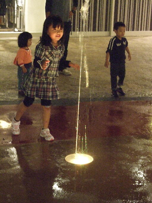 定時になるといきなり地面から噴水が。