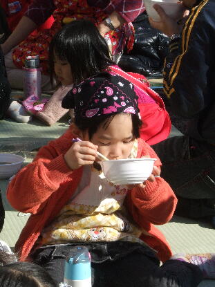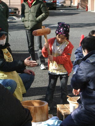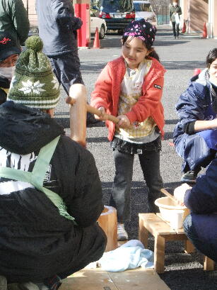 ベルメゾン秋津の年頭行事は恒例のもちつき大会。