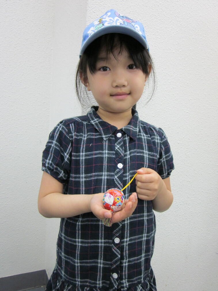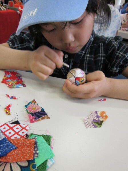 建物の中では特産品展。体験もでき、木目込みのマリを作ってみました。かなり大変!!