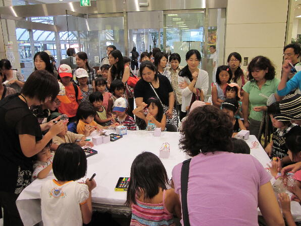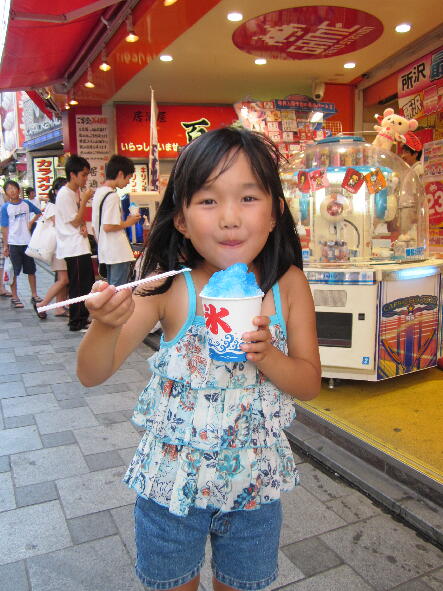 あまりにも暑いので食事も外で済ませようと、所沢の商店街を歩いていると、かき氷を無料サービス。