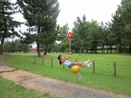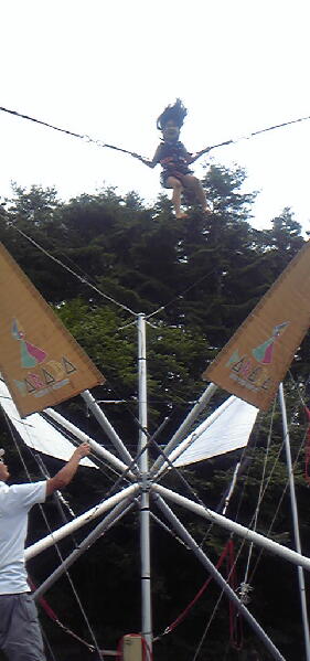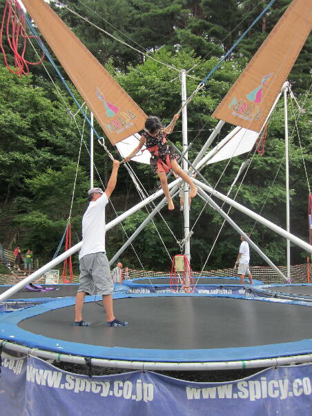 初「バンジートランポリン」8メートルまで飛び上がりました!!泣く子もいる中、怖いと思いきや「楽しかった!」とのこと。。