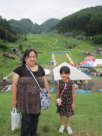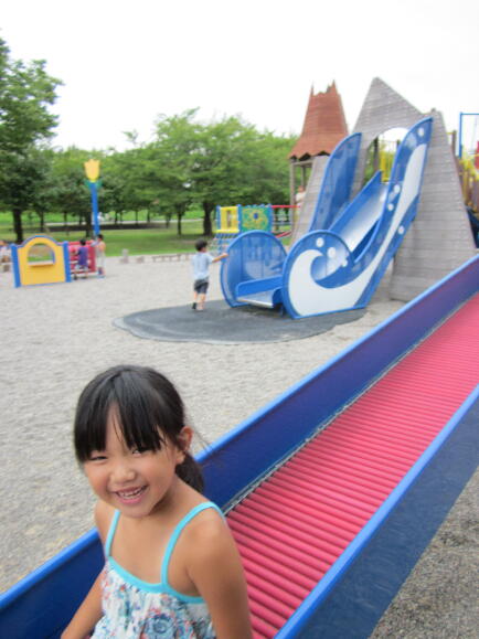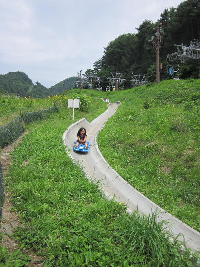 下りはスライダー。レバーでブレーキをかけながら。結構スピードは出るのですが、朱伽さんはスイスイと麓のほうへ…