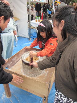石臼体験。見た目より、かなり重いです。たくさんひいたつもりでしたが、、、少ない。