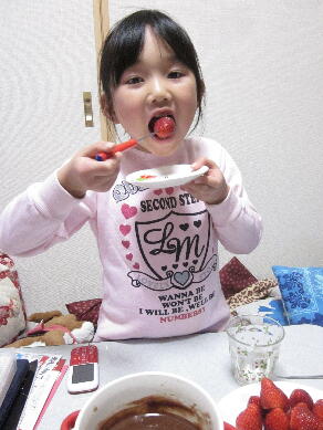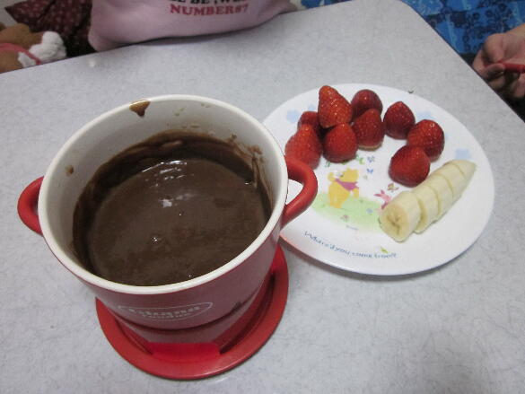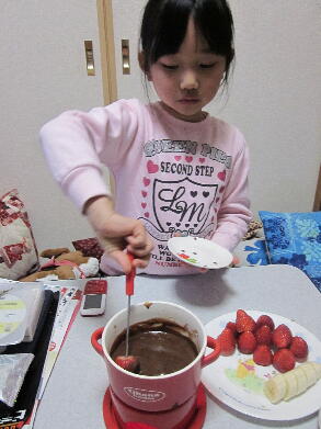 溶かしたチョコレートをたっぷりつけていただきます。