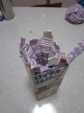 飲料パックを使って編んでいきます。