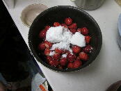 まずはジャムから。イチゴと砂糖を煮詰めます。