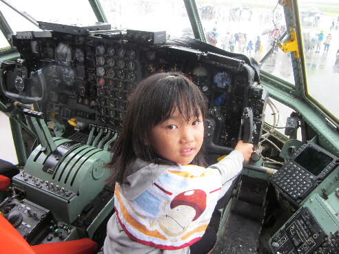 実際の輸送機のコックピットで、気分は操縦士です。