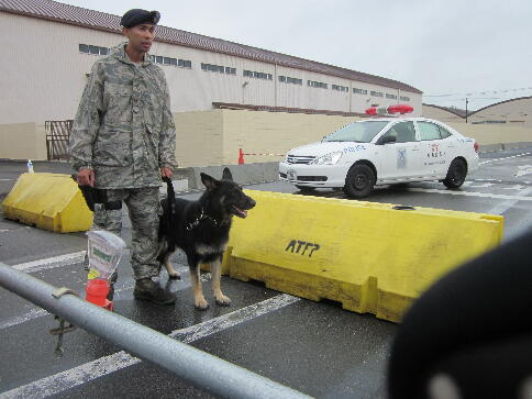警察犬ではなく「軍用犬」。賢そうです。 お土産はケーキ。ダイナミックに甘いです。
