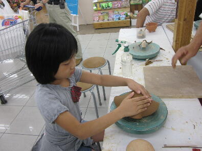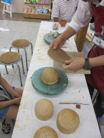 前回ランタンを作った時のおじさんが今度は茶碗作りを教えてくれました。
