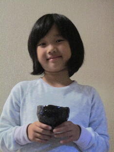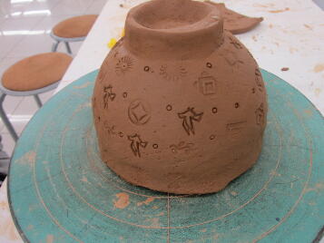 模様を押し当てます。出来上がりが黒いのでちょっと目立ちませんが、マイ茶碗の完成!